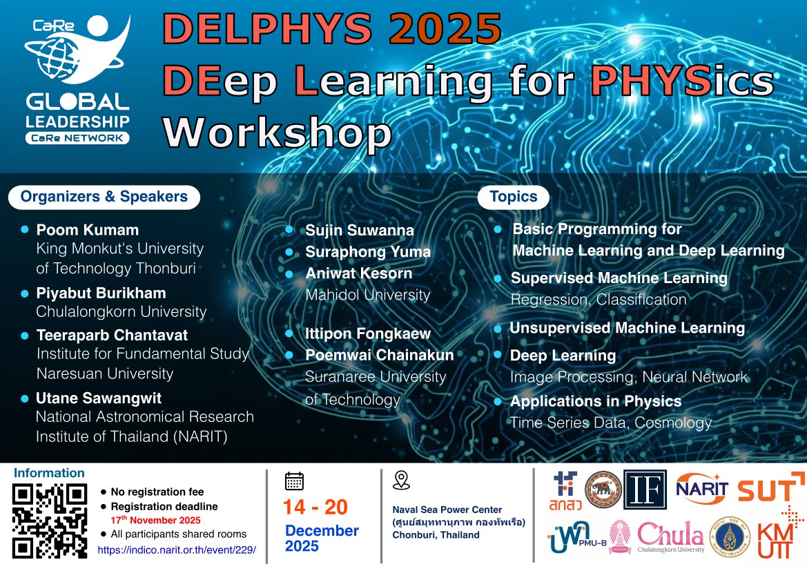This workshop is intended for Thai undergraduate/graduate students and researchers interested in machine learning and deep learning with applications in physics. During this workshop, participants will learn: