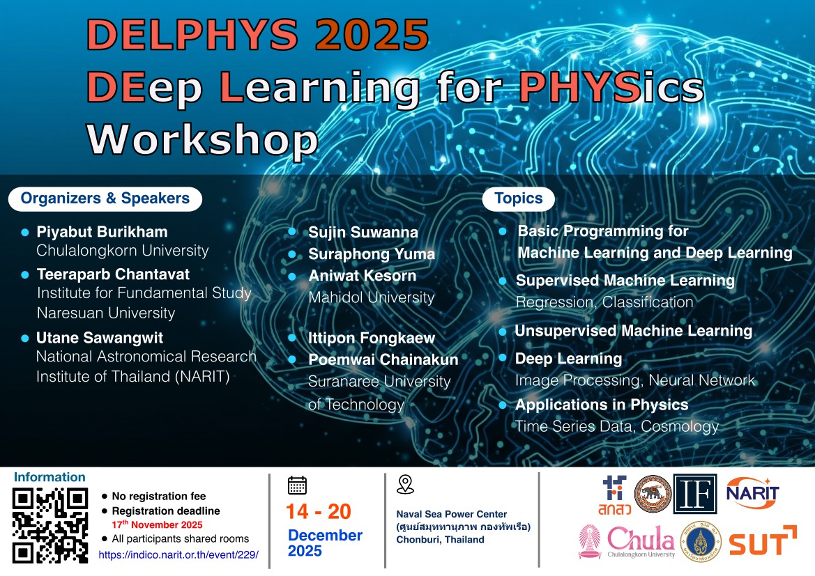 This workshop is intended for Thai undergraduate/graduate students and researchers interested in machine learning and deep learning with applications in physics. During this workshop, participants will learn:
